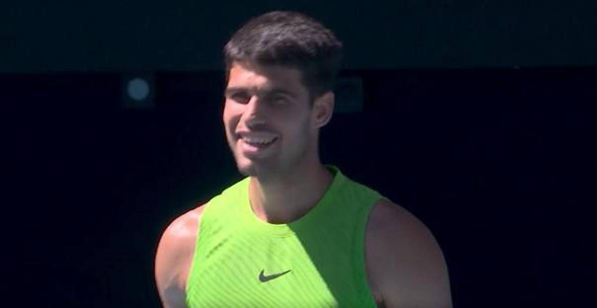 Succede nel quinto game del secondo set, quando Alcaraz ha appena piazzato il break e sta servendo per consolidarlo dopo aver faticato nel primo parziale, vinto ‘soltanto’ al tie break. “Carlos Nadal!” è stato l’urlo di un tifoso di Alcaraz, che nel silenzio della Rod Laver Arena ha fatto rumore, tanto da scatenare prima il sorriso e poi l’incontenibile risata di Carlos.