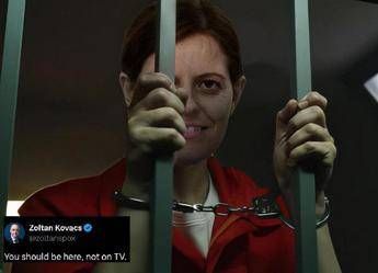 (Adnkronos) – "Dovresti essere qui, non in tv". Lo scrive su X Zoltan Kovacs, portavoce del premier ungherese Viktor Orban, pubblicando un fotomontaggio in cui si vede Ilaria Salis ammanettata e in cella. La presa di posizione in risposta al tweet in cui l'eurodeputata annunciava la sua partecipazione alla trasmissione 'Che Tempo Che Fa'. —internazionale/esteriwebinfo@adnkronos.com (Web Info)