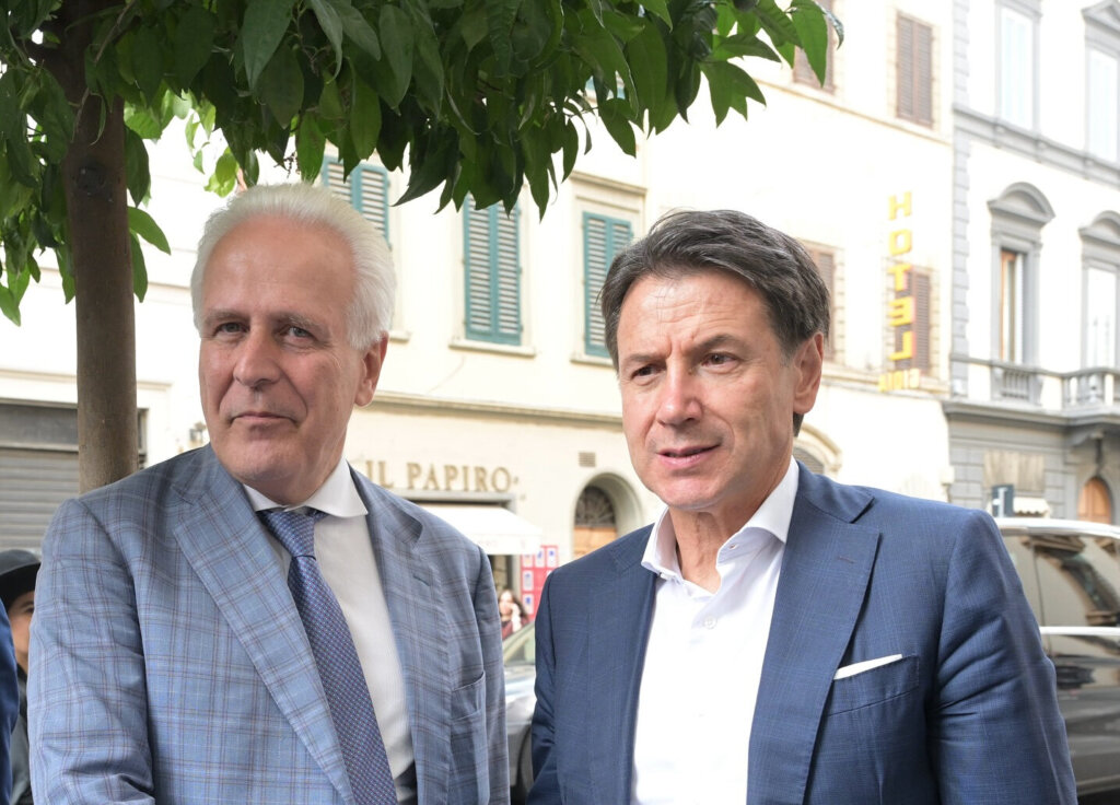 Conte con Eugenio Giani, Pd, presidente Regione Toscana uscente e candidato centrosinistra del cosiddetto campo largo per il Giani bis.
